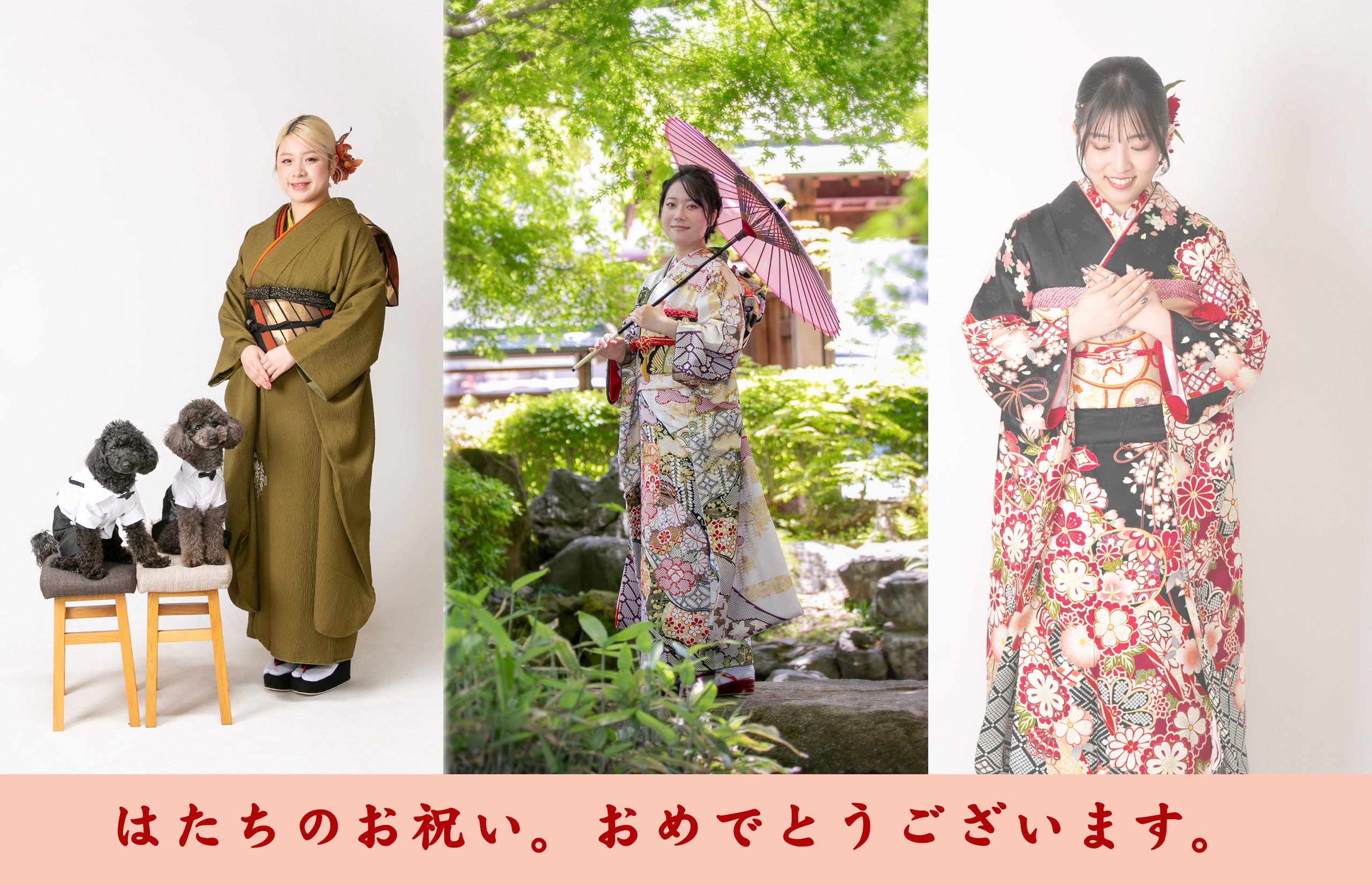 祝20歳おめでとうございます。はたちのお祝い(旧成人式)は一生に一度の大切な節目。みなさんはどんなお写真を残したいですか?ヤマト写真館ではそんな大切な記念日を上品に丁寧にお撮り致します。10年後、20年後、一生見飽きない上品な写真づくり…それが当館のこだわりです。