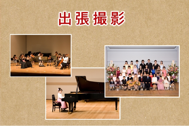 同窓会やピアノ発表会、学校アルバム、各種記念日の出張撮影も可能です。スナップ写真、集合写真、建物写真、その他お気軽にお問い合わせ下さい。
