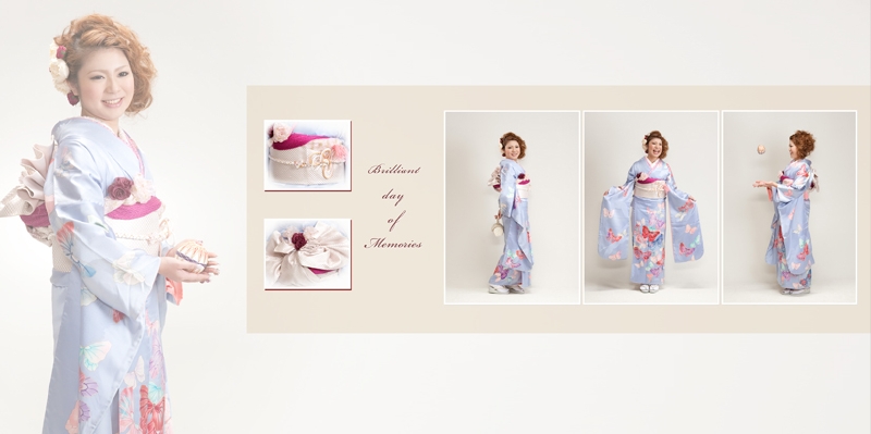 | 成人デザイン写真集一生に一度の成人式。せっかくだからたくさん写真を残したいという方にお進めです。 写真集はお客様のお着物に合わせてデザインいたします。料金等詳しくは成人ページをご覧下さい。 |